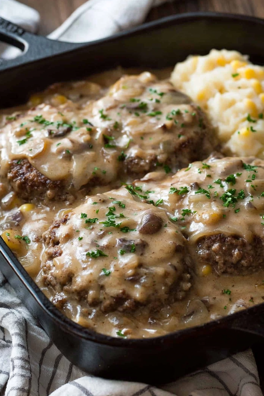 Rich & Comforting – Juicy hamburger steaks smothered in a flavorful, savory gravy make this dish a true comfort classic.