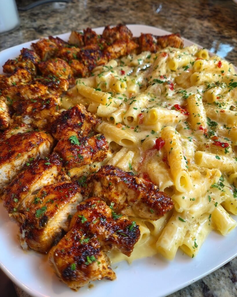 Baked Chicken Penne with Creamy Mozzarella Parmesan Sauce