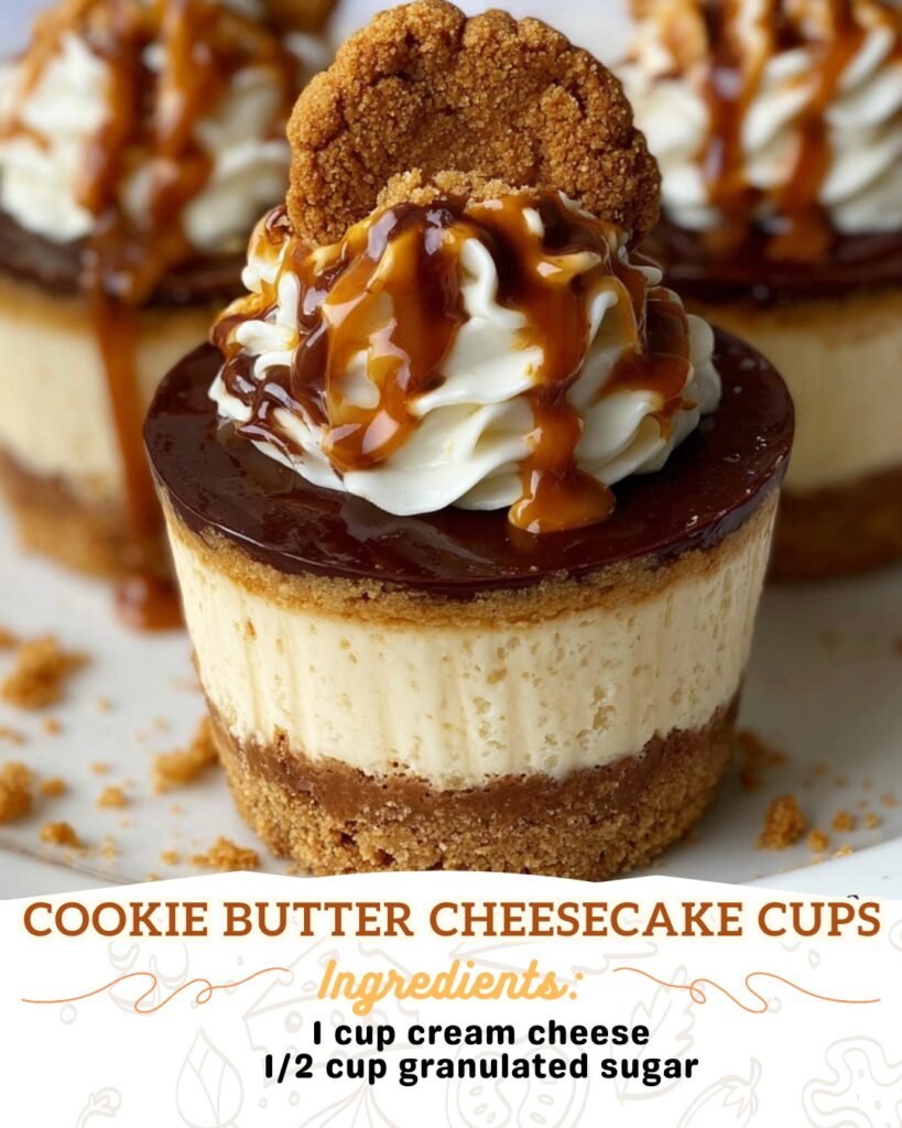 Indulge in these delicious Cookie Butter Cheesecake Cups, a perfect blend of creamy cheesecake and cookie butter flavors.