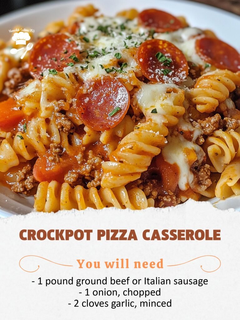 This Crockpot Pizza Casserole is everything you love about a hearty, cheesy pizza night made hands-off in your slow cooker. Tender rotini pasta, savory meat sauce, melty mozzarella, and pepperoni all simmer together for hours, developing rich, comforting flavor. It’s family-friendly, budget-conscious, and perfect for busy nights or casual gatherings.