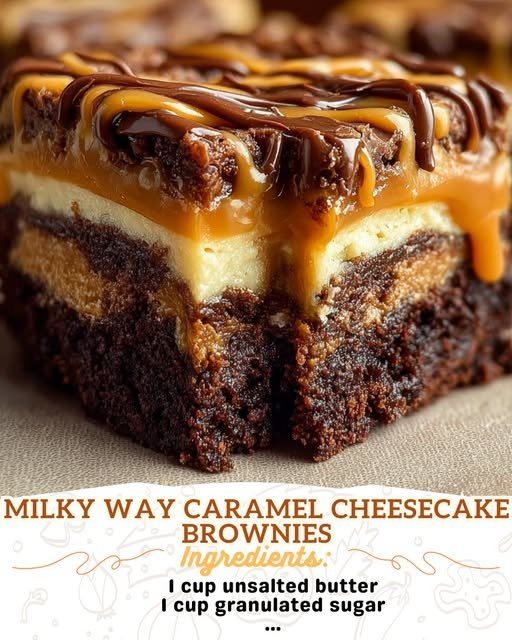 Milky Way Caramel Cheesecake Brownies are a decadent dessert combining rich brownie layers with creamy cheesecake and caramel, perfect for chocolate lovers.