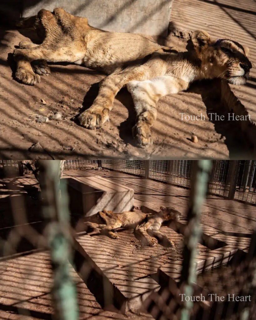 In the heart of Khartoum, Sudan, where the dry winds carry whispers of a country still healing from years of turmoil, a haunting sight has captured the world’s attention — four emaciated lions, their ribs pressing sharply against their skin, struggling to cling to life in a rundown city zoo.