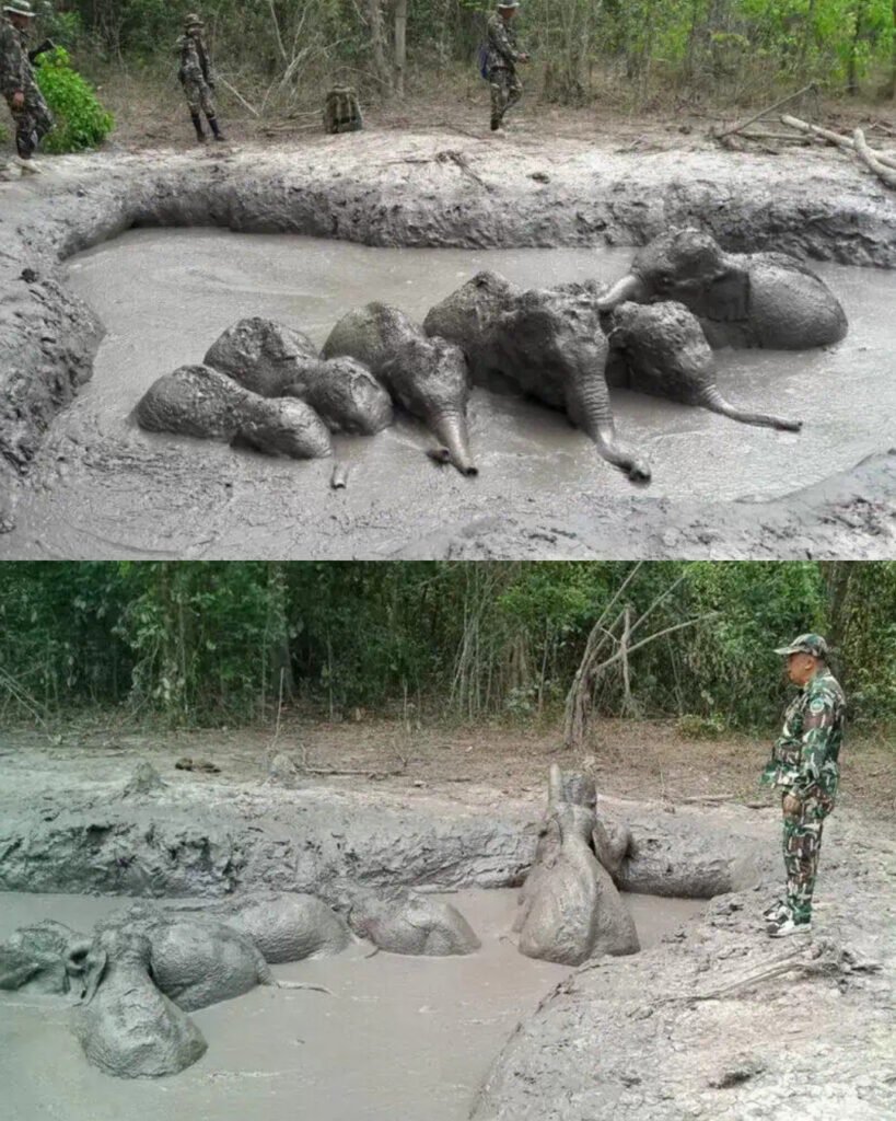 Panic set in as they thrashed and called for help, their small trunks reaching toward the fading daylight. The more they fought, the deeper they sank. By the time local rangers were alerted, the calves were exhausted, their cries weaker but no less heart-wrenching.