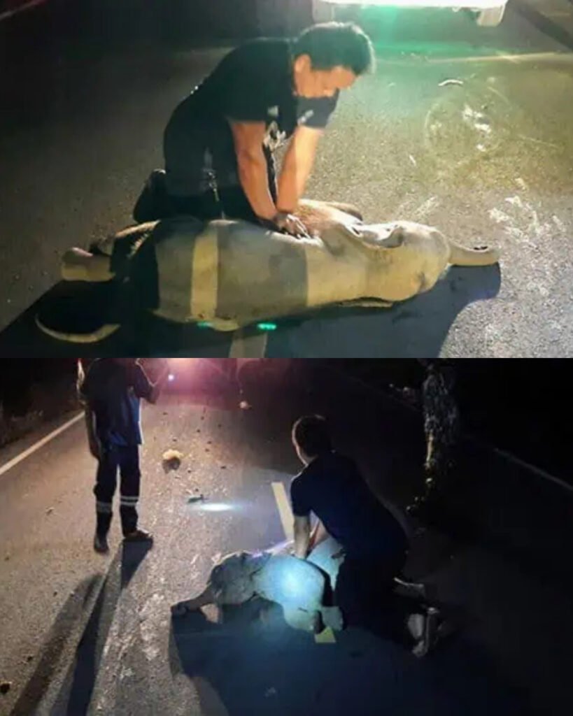 For twenty-six years, Mana Srivate had seen nearly everything — the chaos of roadside crashes, the desperate rhythm of CPR, the fragile line between life and death. But nothing in his long career had prepared him for the night he knelt in the middle of a Thai highway and tried to bring a baby elephant back to life.